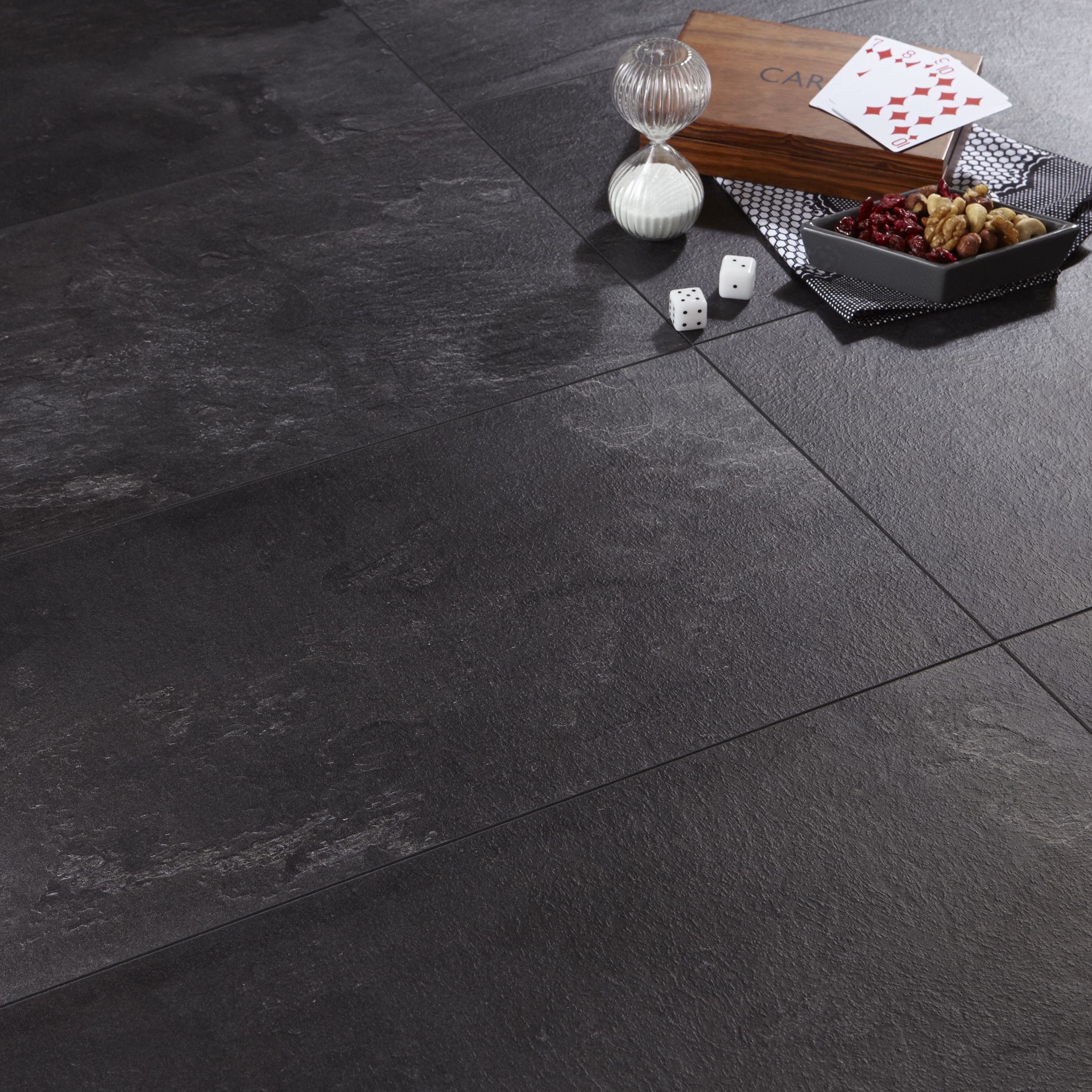 Colours Harmonia Black Slate Effect Laminate Flooring 2 05m Pack Of 12 Diy At B Q